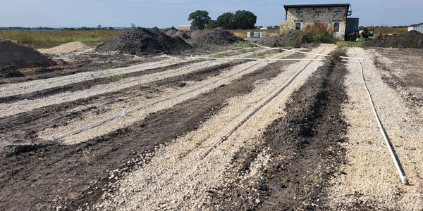 This is a mound septic system that will be covered with sandy loam. The end result will be about 18"-20" tall on the frontside and is a bit higher on the backside.